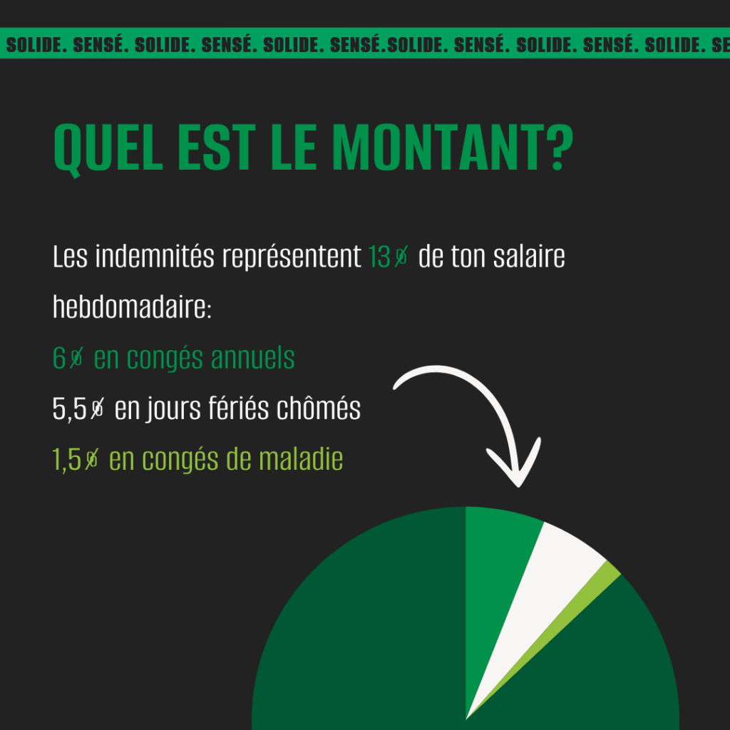 - votre paye de vacances (13 % de votre salaire brut, remise deux fois par année).